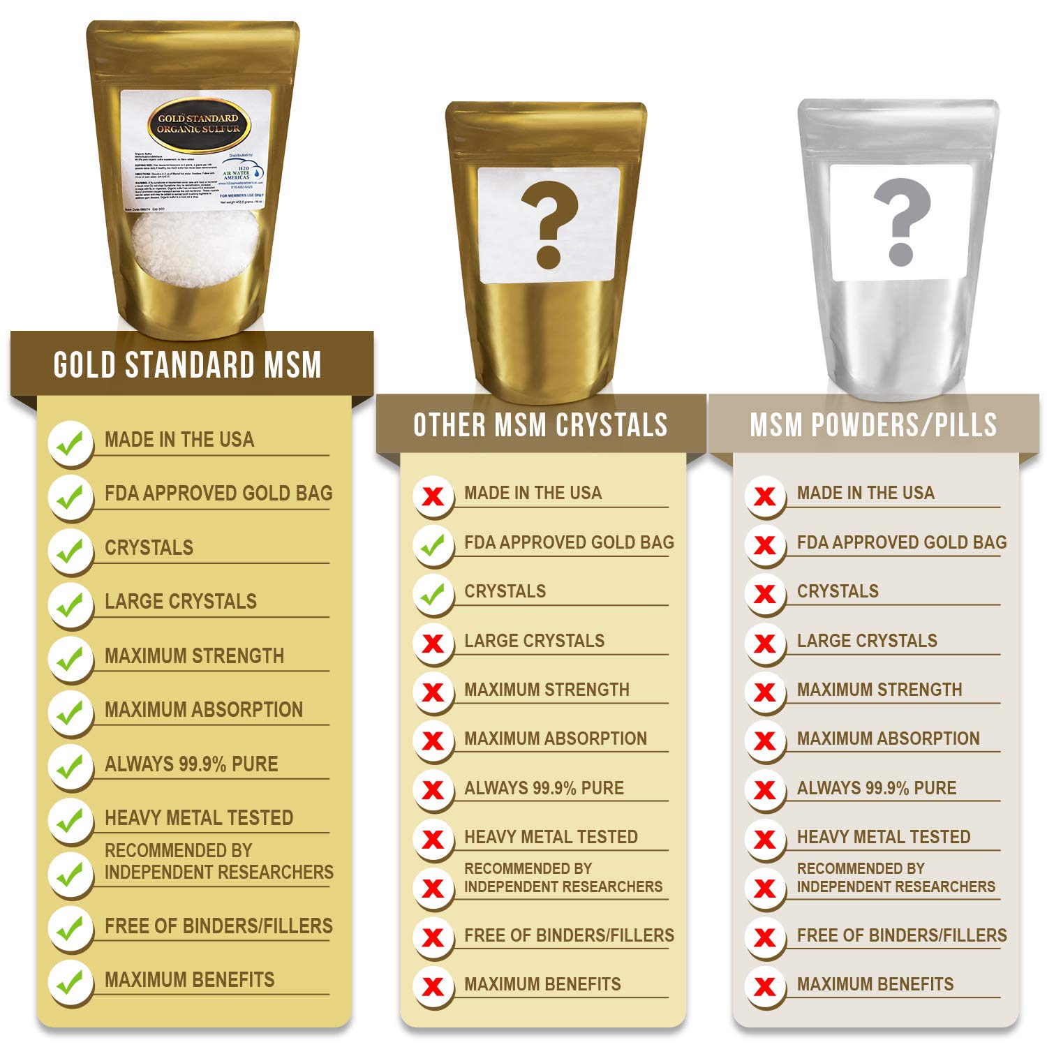 Gold Standard Organic Sulfur Crystals 1lb 99 9 Pure Msm Crystals Largest Granular Flakes Available 3rd Party Tested Same Day Priority