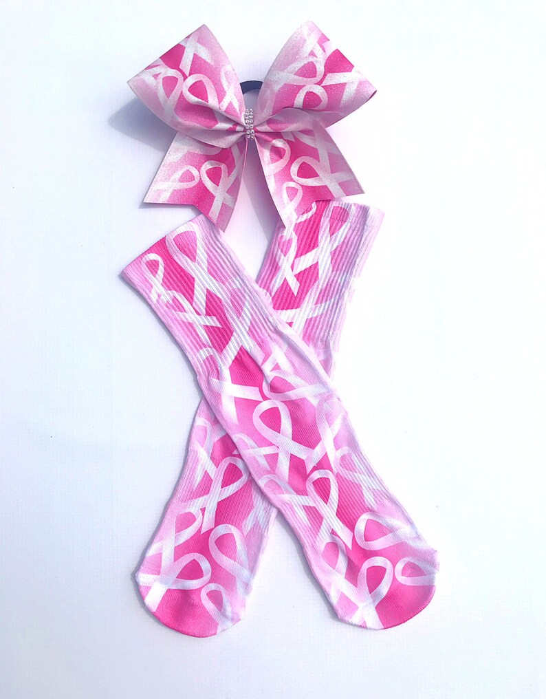 Pink Breast Cancer Awareness Combows Cheer Socks Cheer Bows Matching Cheer Bows And Socks Practice Fashion Cheer Practice Wear