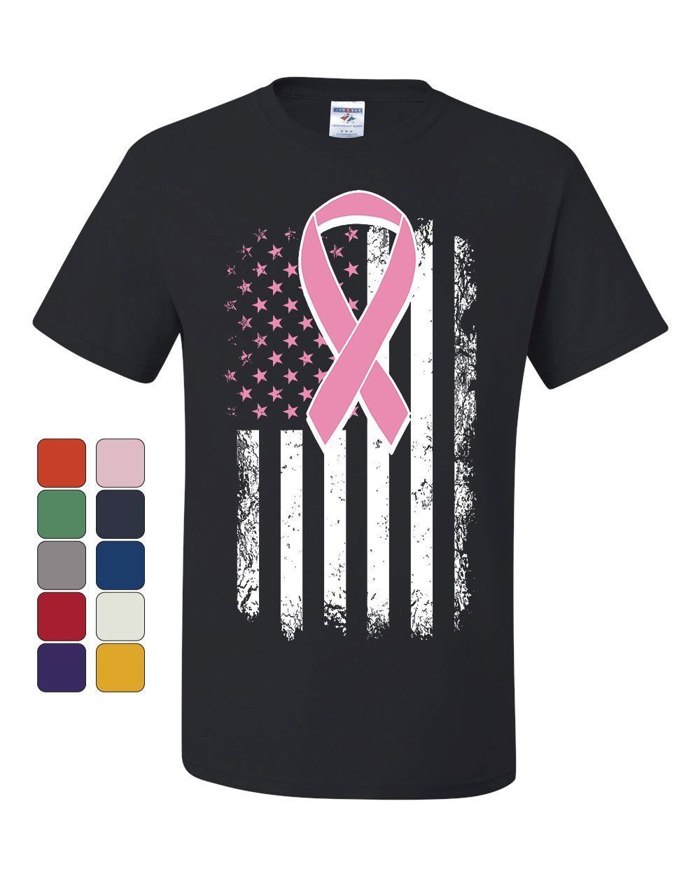 Pink Ribbon Distressed Flag T Shirt Breast Cancer Awareness Tee Shirt Tees Shirt Men Male Online Designer Short Sleeve Fashion Custom Xxxl M