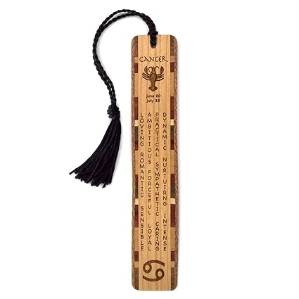Cancer Zodiac Sign Artwork And Positive Personality Traits Engraved Wood Bookmark With Inlays And Tassel Personalized Version Also Available