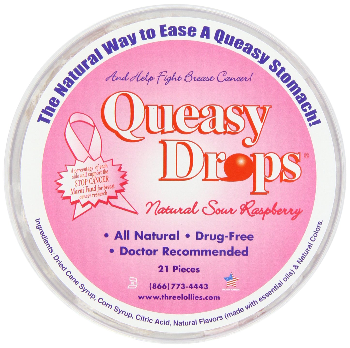 Three Lollies Queasy Drops Pink Natural Sour Raspberry 21 Piece S