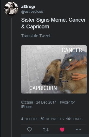A Trogi On Twitter Sister Signs Meme Cancer Capricorn