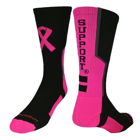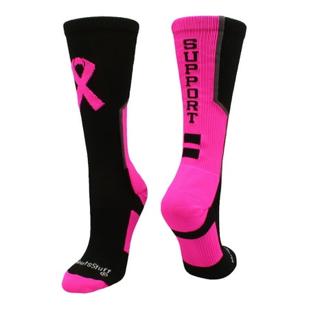 Madsportsstuff Breast Cancer Awareness Support Crew Socks Black Neon Pink Graphite Large