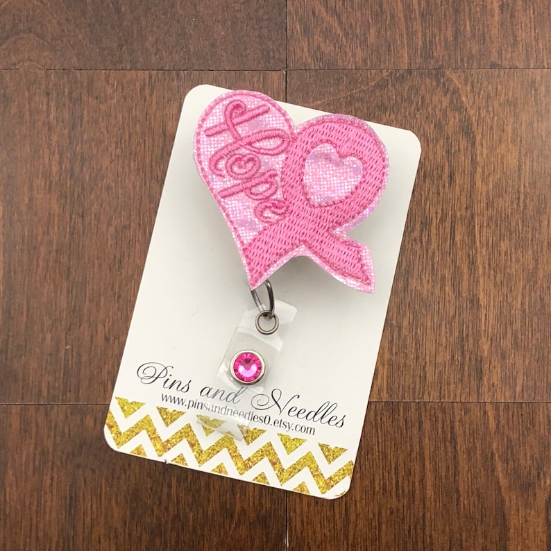 Oncologist Id Badge Reel Pink Heart Badge Reel Awareness Badge Holder Glitter Id Badge Reel Breast Cancer Awareness Id Badge Reel