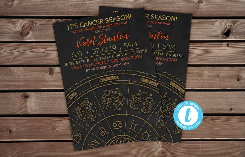 Zodiac Invitation Cancer Astrology Invite Online Printable Invitations Cancer Birthday Cancer Constellation