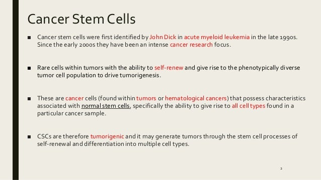 About Cancer Stem Cells European Cancer Stem Cell Research