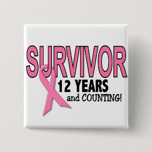 Breast Cancer Survivor 12 Years Counting 15 Cm Square Badge