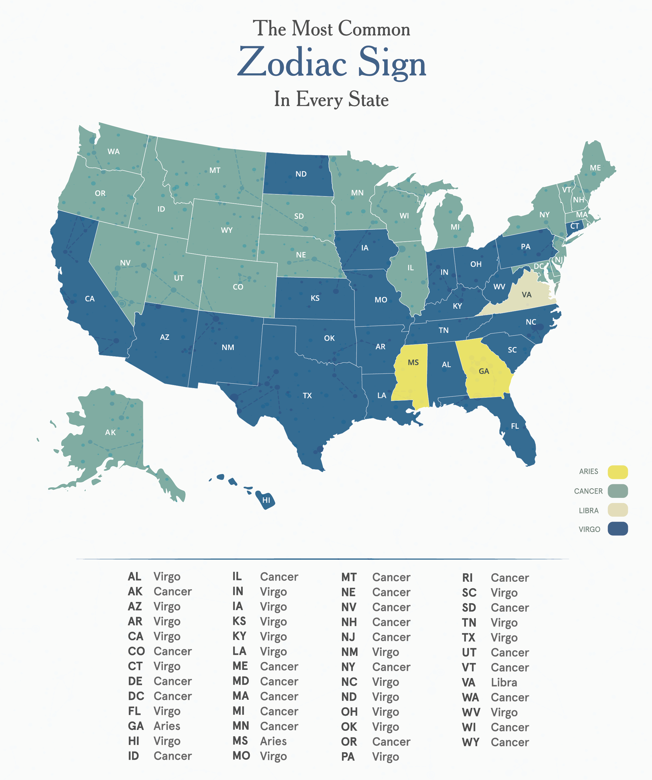 Most Common Zodiac Signs In Every State Framebridge