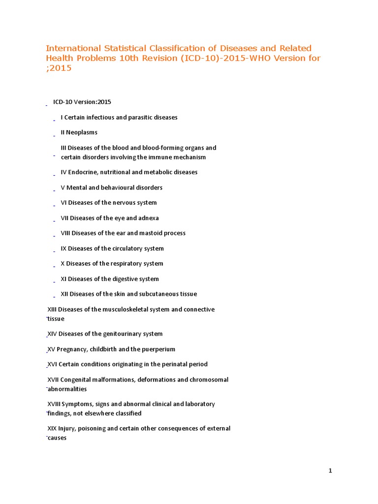 Icd 10 International Statistical Classification Of Diseases