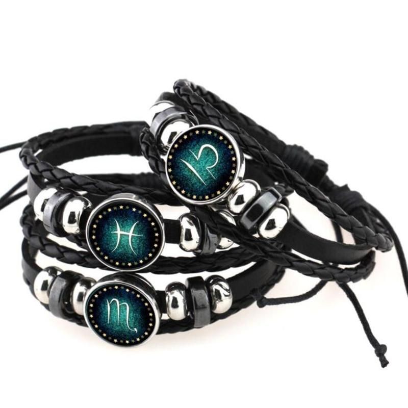 Wholesale 2017 New Aries Taurus Gemini Cancer Virgo 12 Zodiac Sign Bracelet Women Men Black Genuine Braided Leather Bracelets Xy17015