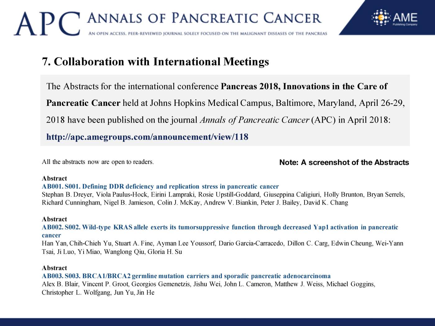 Apc Annual Report 2018 Annals Of Pancreatic Cancer