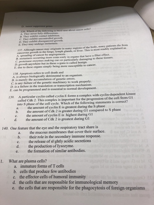Solved 136 Which Of The Following Is Not True About Canc