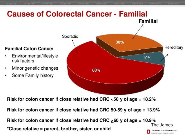 Carcinogens are materials that are known to cause cancer. Learn more about the risk factors for colorectal cancer. We analyzed the joint effect of environmental risk factors and family history of colorectal cancer on colon cancer.